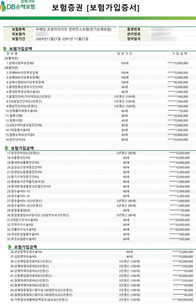 질병후유장해를 이렇게 가입하신거며 삭제 의견