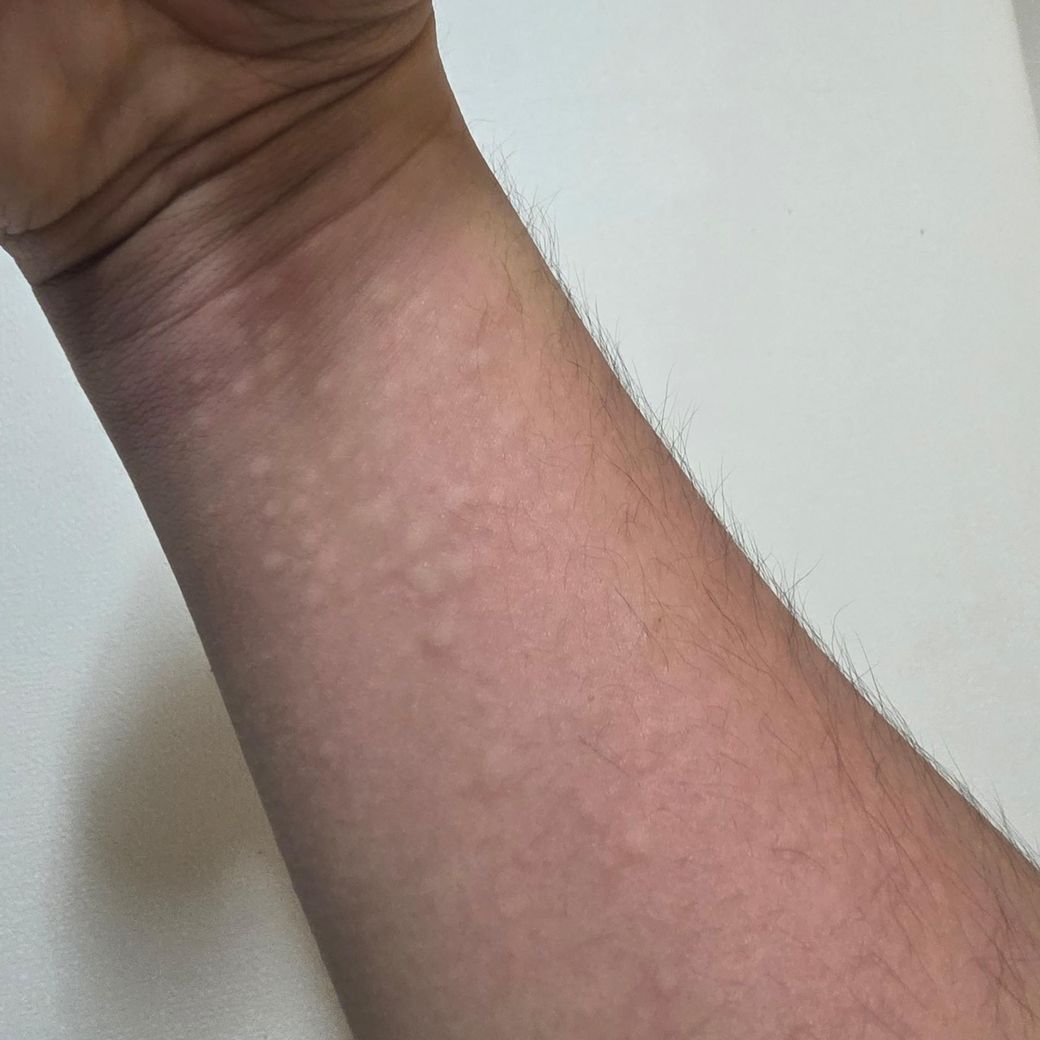 : 손목‧팔 안쪽은 땀, 마찰, 온도 변화에 민감해서 이런 잔잔한 두드러기 형태가 흔합니다.