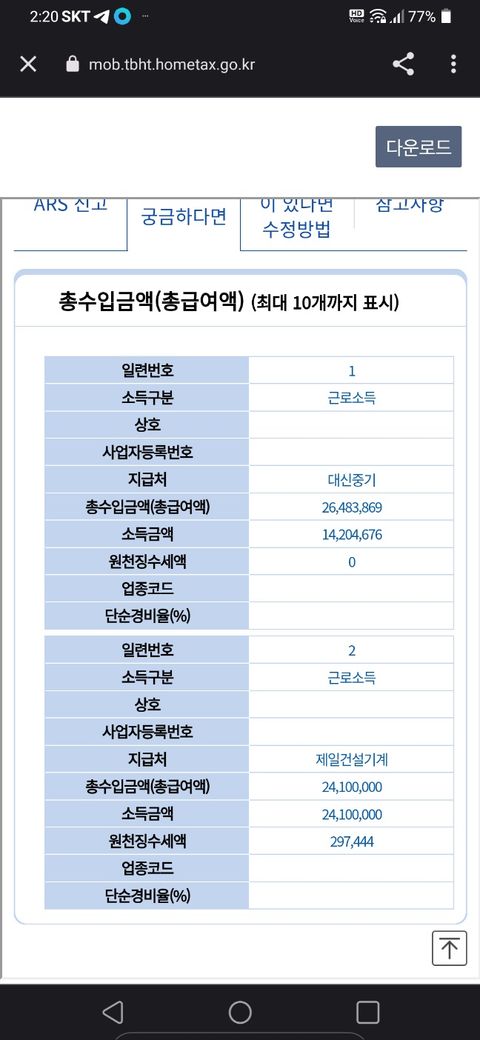 이중근로자로써 이번에 종합소득세가 나왔는데 이렇게 많이 나오는게 맞는건가요?