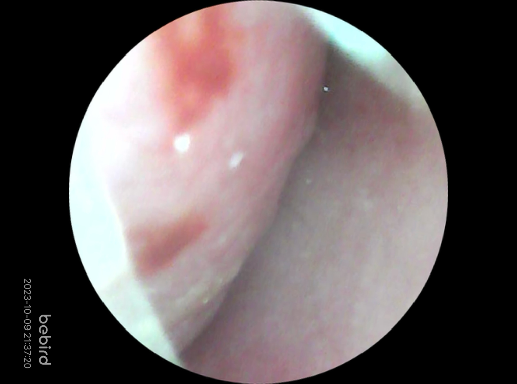 비강 내 점막의 부종이 관찰되며, 혈관운동성 비염의 경우 치료는 원인 회피 및 증상 호전에 초점을 맞추게 되며, 근본적인 치료는 어렵습니다. 강한 향기, 음주, 매운 음식, 온습도 변화 등 증상을 유발할 수 있는 원인들을 회피하는 것이 최선입니다. 따라서 증상이 심하지 않다면 가정에서 지켜보시고, 증상이 불편한 경우 경구 약물 또는 비강내 스테로이드 스프레이 등을 처방받아 사용해 볼 수 있겠습니다.