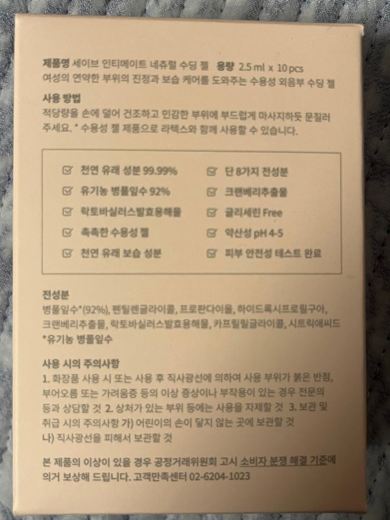 다른 가능성으로는 해당 제품의 자극성이 있을 수 있는 것인데, 현재 제품에 포함된 성분 중 시트릭애씨드(구연산)는 산성 성분으로 사람마다 다르지만 예민한 사람인 경우 외음부 등 민감한 피부의 경우 자극감을 느낄 수는 있습니다.
