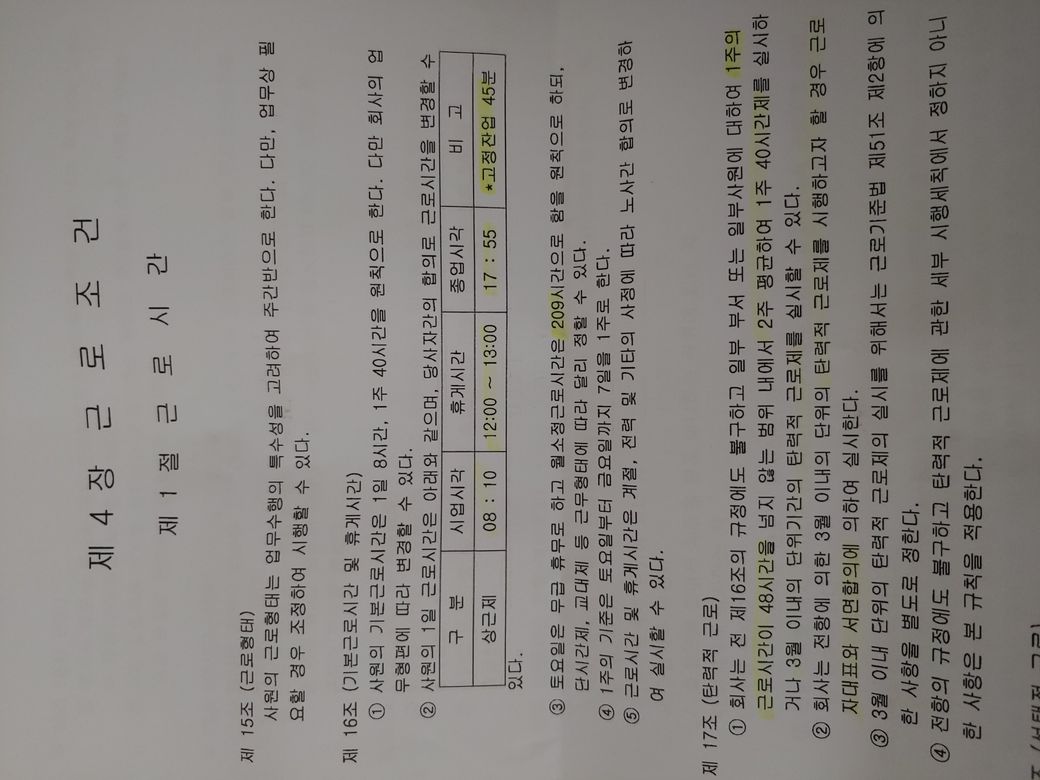 첨부된 취업규칙상에서 문제가 없는건지 문의 합니다.