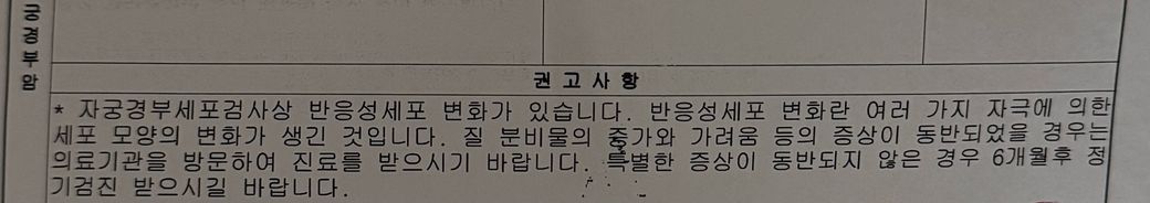 자궁경부암 국가검진 결과 반응성세포