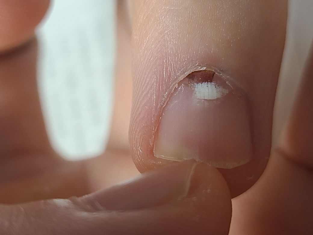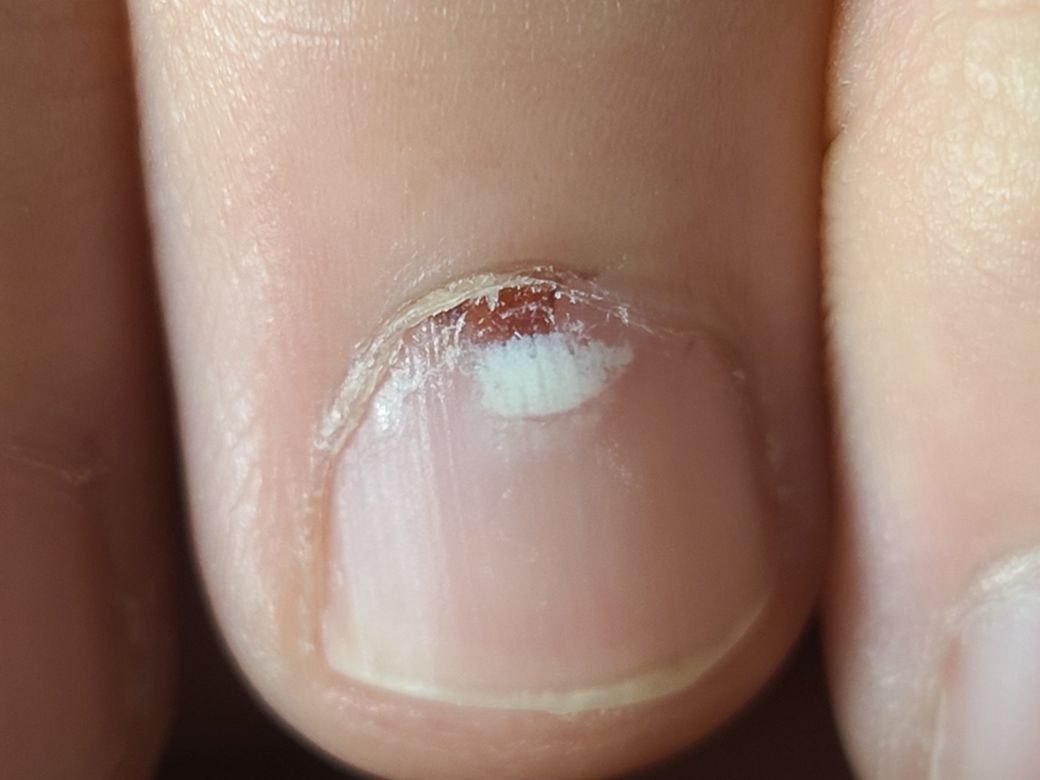 앞에 하얀자국 역시 손톱타박성이 있을때 발생할수있는 흔적입니다.