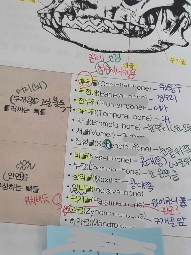 2. 사골은 안면을 구성하기도 하지만 단면상 두개골을 감싸고 있기 때문입니다.