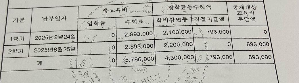 수업료인 5,786,000원을 입력하면 되는게 맞을까요?