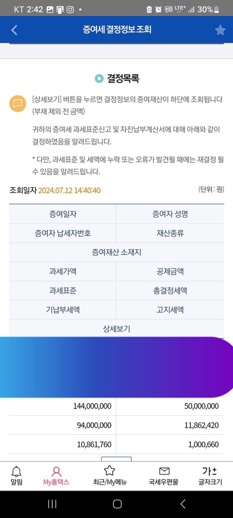 작년 말에 아버지가 세무사를 통해서 할머니 명의로 되어있는 집 지분 일정 퍼센트를 저한테 증여를 해주셨습니다. 손텍스 앱에서 확인을 해보니 정확하지가 않은 것 같아서요.