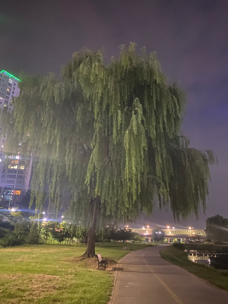 잎사귀의 처짐 정도나 크기를 유추하였을 때는 버드나무일 가능성이 높아보입니다.