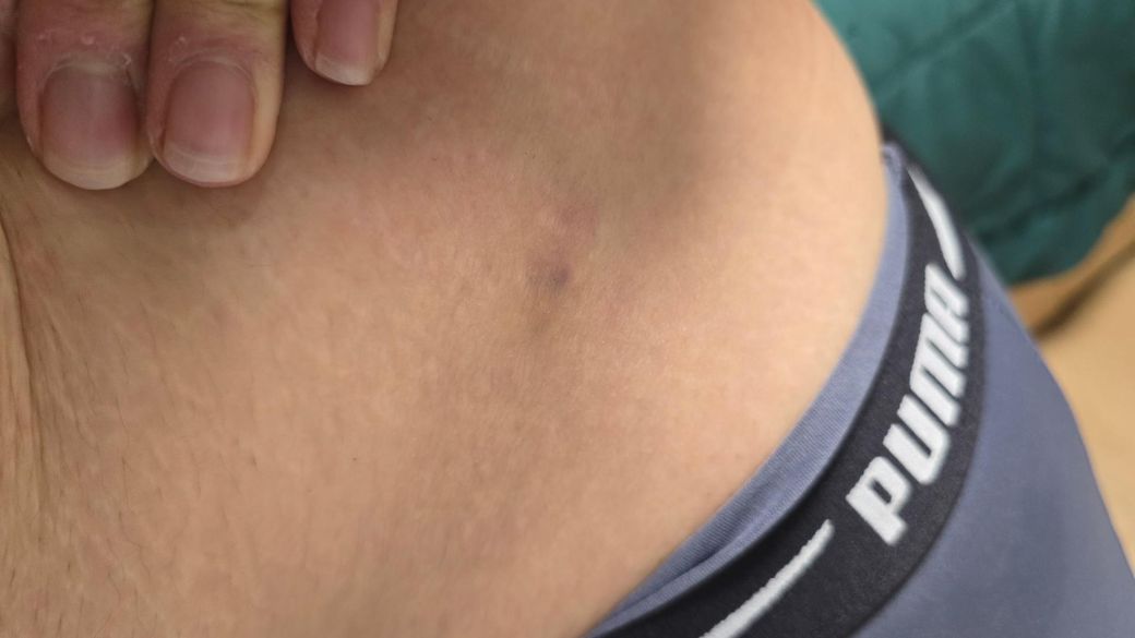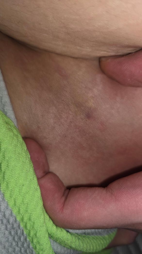 사진의 소견만 놓고 정확히 무어라 이야기를 드리기는 제한적이긴 합니다만, 피부 마찰 등으로 인한 자극이 누적되면서 발생한 색소 침착 소견일 가능성이 높아 보입니다. 보다 정확하게 파악하고 감별 및 진단을 해보기 위해서는 실질적으로 피부과 진료 및 검진을 받아보는 것이 도움이 될 수도 있겠습니다.
