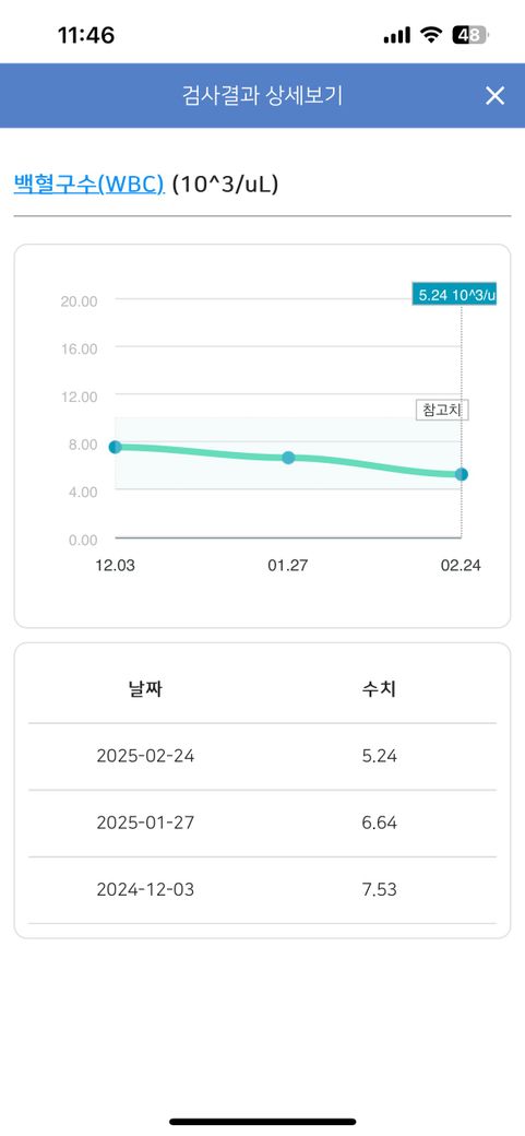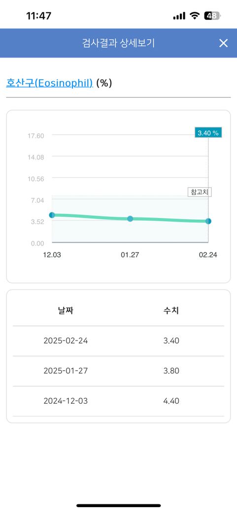 이외에는 모두 정상범주이기 때문에 이 안에서 증가했다 낮아졌다 하는걸 가지고 감염이나, 식단에 의한 영향이라고 생각하지 않습니다.