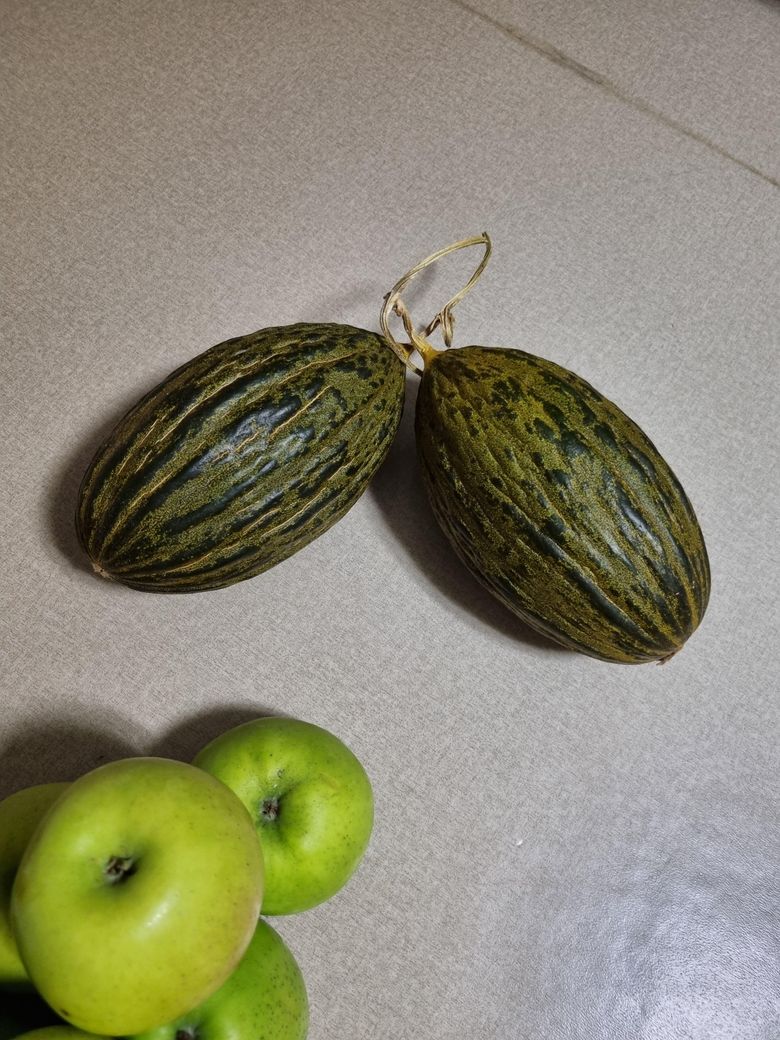 과일자체가 종류가 조금씩 다른품종 같아요. 위의 메론과일하고는 전혀 다른품종이라는 생각이 드느군요. 맛도 조금은 다를것 같아요.