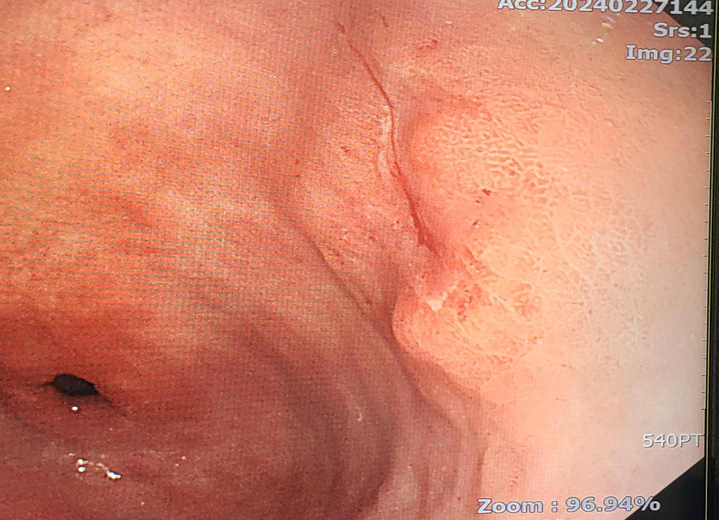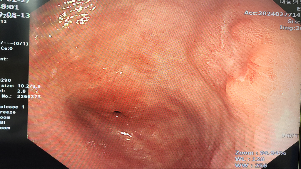 조기암 중에서 위험도를 판단해보자면 사진과 같은 궤양성은 비교적 (조기암 중에서는) 위험도가 높은 편에 속합니다.