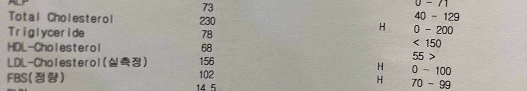 안녕하세용 20대 중반 남성이구요 저번 5월9일날 건강검진 체크 할때 ldl 콜레스테롤 156이 나왔고