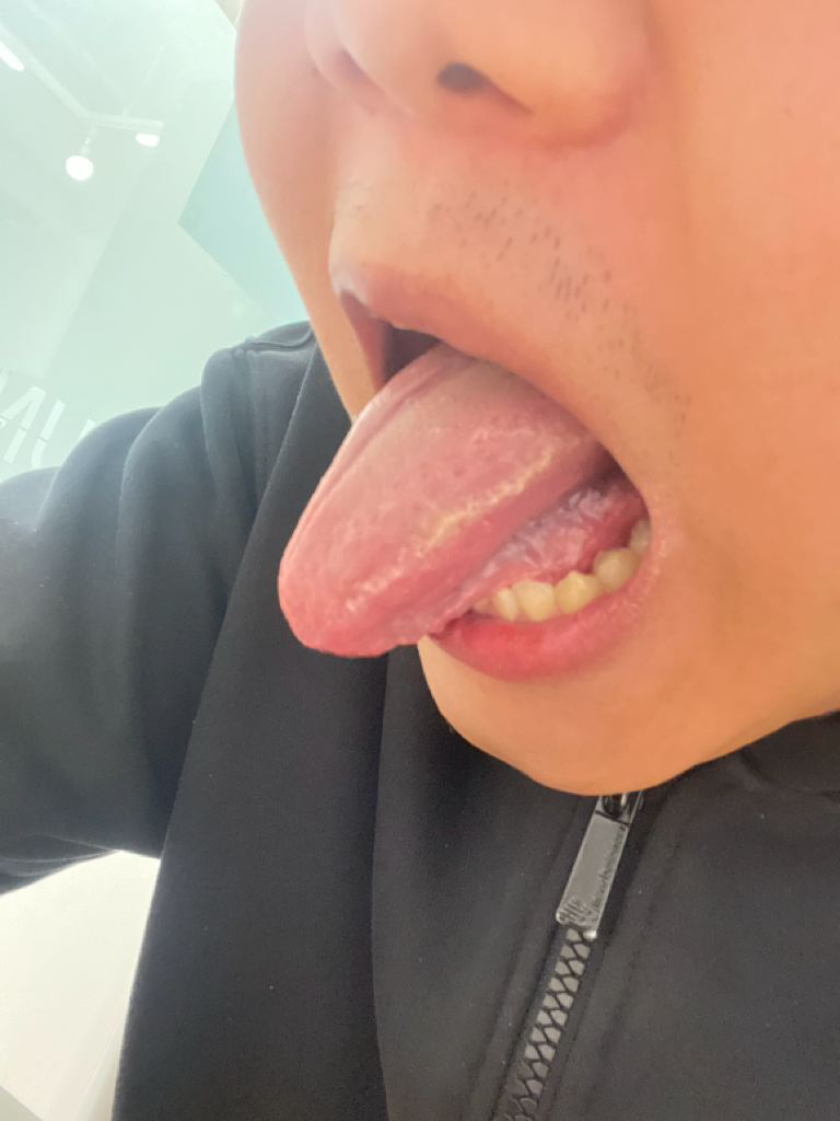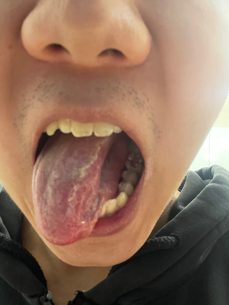 백태의 가능성이 있겠고 구강건조증이 그 원인일 수 있겟습니다.