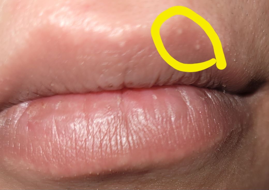 1, 3번째 사진은 입술 오른편 입꼬리쪽에 생겼으며 너무 작아 피지인지 아닌지 확인이 어려우며 여러 알갱이가 모여있는듯한 모양이고 조금 돌출된 느낌입니다
