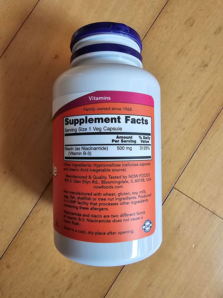 미토비타 성분이 나이아신아마이드 500mg이므로 나우푸드의 나이아신아마이드 500mg와 대체가 가능해보입니다.