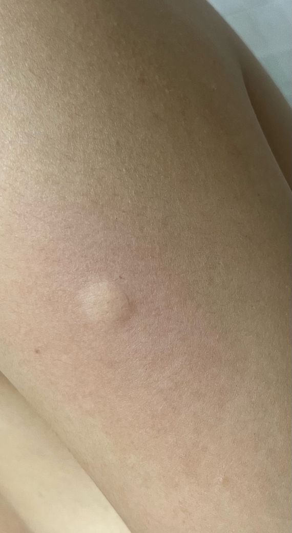 위고비를 팔에 주사했는데 평소와 달라서 질문드립니다. 사진처럼 동그랗게 모기물린듯이 부풀어 오르고, 주사맞은곳 피부가 하얗게 되어서 무서워요...