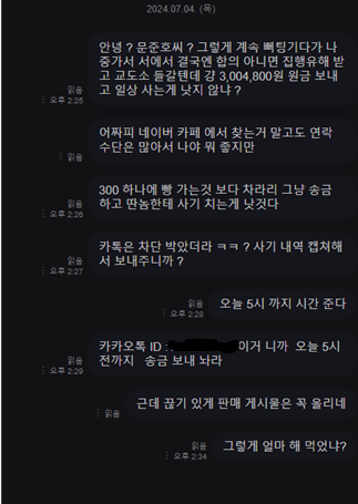 카카오톡 대화 내용은 상대 사기꾼이 차단 해서 못보는 상태긴 합니다 위에 꺼는 사기꾼이 읽었구요