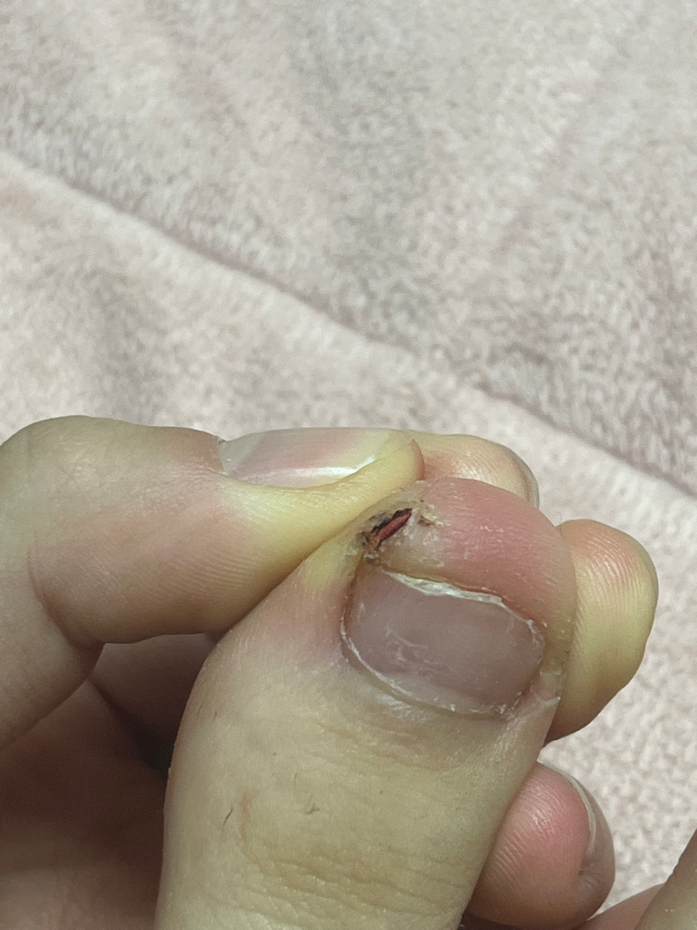 상처에 감염증은 없으나 연고를 꾸준히 발라주셔야 하겠고 최대한 건들지 않도록 노력하셔야 하겠습니다. 굳은살을 뜯어내는 습관은 이러한 작은 상처들을 계속 유발할 수 있고, 상처에 감염증이 발생하면 치료가 더 힘들어집니다.