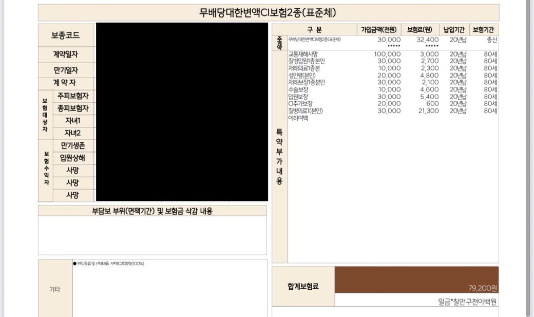30대 후반 여자입니다. 지인 통해서 보험 들었는데 위 보험에 운전자, 실비보험 포함해서 한달 보험료만 40만원 가까이 나와요. 찾아보니 제 나이대에 20만원대 정도가 평균인거 같아서요. 이렇게 내는게 맞는건가 싶어 올려봅니다.