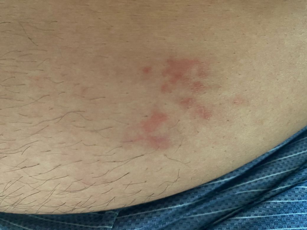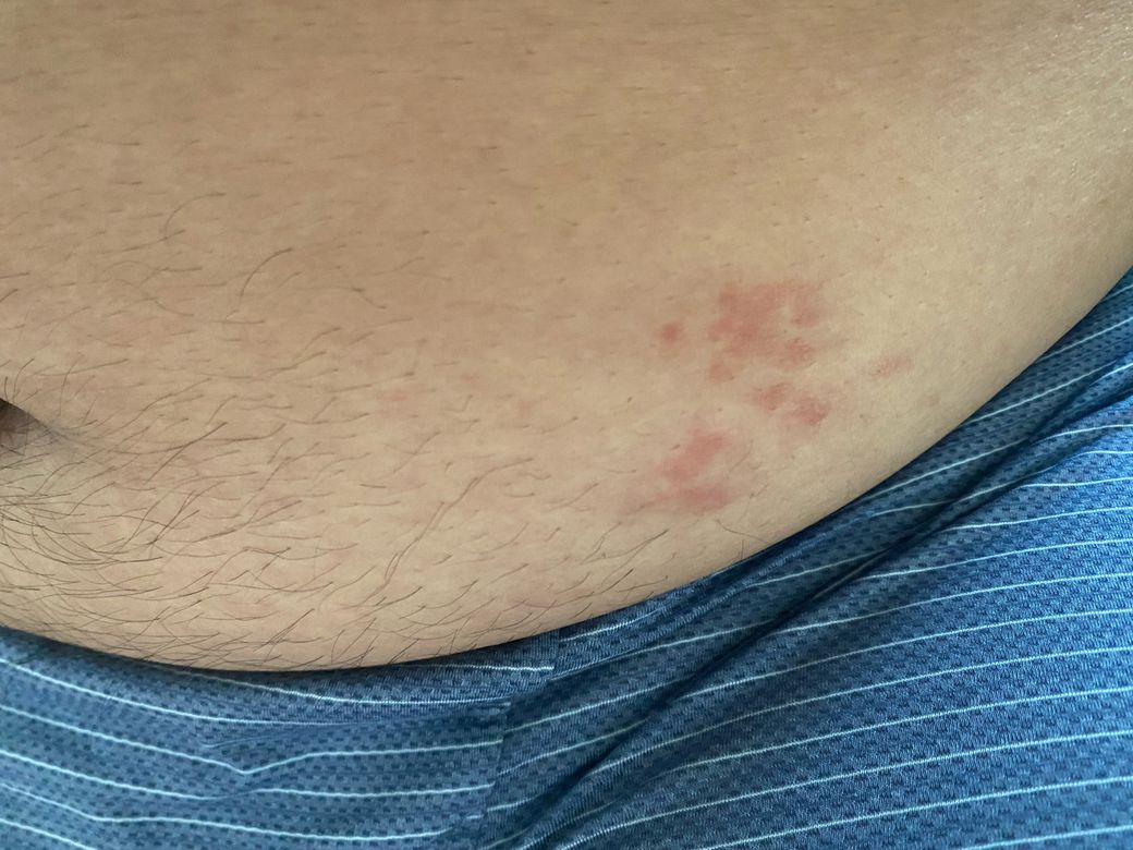 감별로는 다음이 현실적입니다. 가장 가능성이 높은 것은 접촉성 피부염입니다. 벨트, 바지 단추(니켈), 고무 밴드 등 반복 접촉 부위에 생기며 비교적 흔합니다.