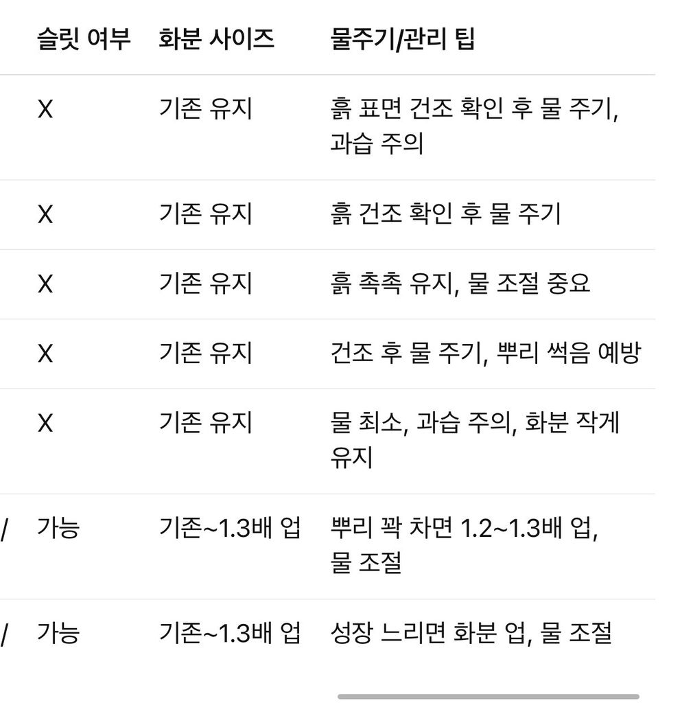 gpt가 추천해분 화분사이즈와 종류를 첨부할게요