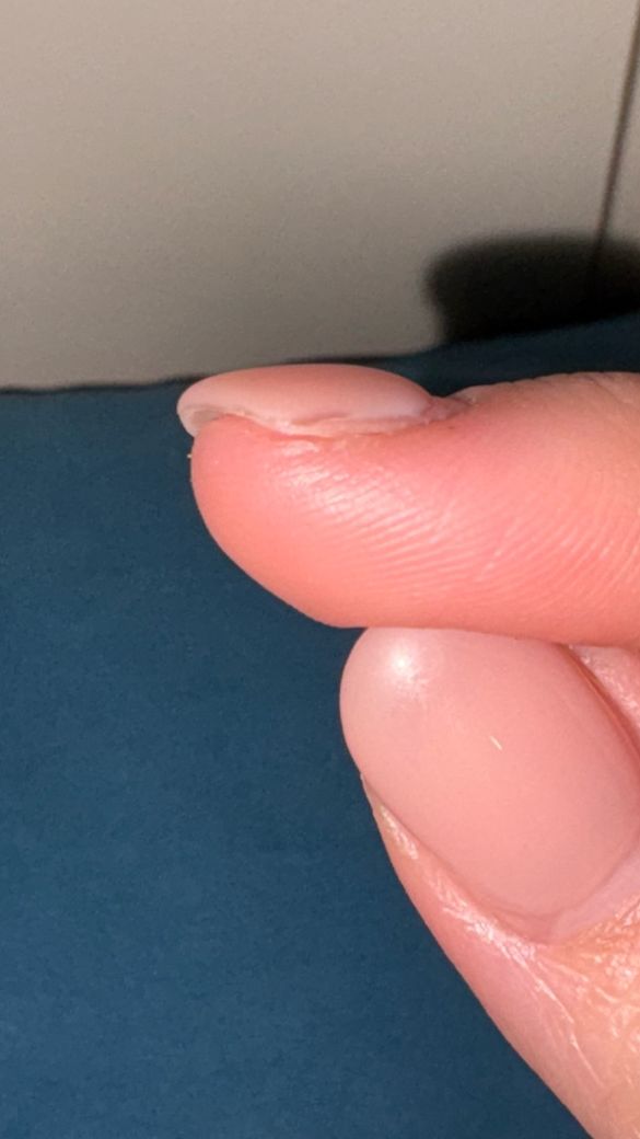 안녕하세요. 손톱 기른 상태로 봤을 때는 젤 네일을 받으신지 10-14일 정도 돼 보입니다. 곰팡이가 피었는지 궁금하신 것 같은데 자세한건 젤네일을 제거해야지 정확하게 판단을 할 수가 있습니다. 사진상으로 봤을 땐 컬러가 칠해져 있는 손톱이기 때문에 설령 곰팡이라 하더라도 컬러에 덮혀 보이지 않을 가능성이 매우 큽니다. 때문에 곰팡이 균으로 보이진 않습니다. 손톱 표면에 곰팡이 균이 생기게 되는 이유는 젤네일에 미세한 리프팅이 생겼을 때 수분이 들어가고 건조가 관리되지 않았을 경우 수분이 고여있게 되면서 곰팡이로 인한 변색이 생길 수 있습니다. 곰팡이가 맞다면 젤네일 제거 후 자연손톱으로 지내시면 더 번질 일은 없고 손톱이 자라는 정도에 따라 잘라내면 사라집니다.