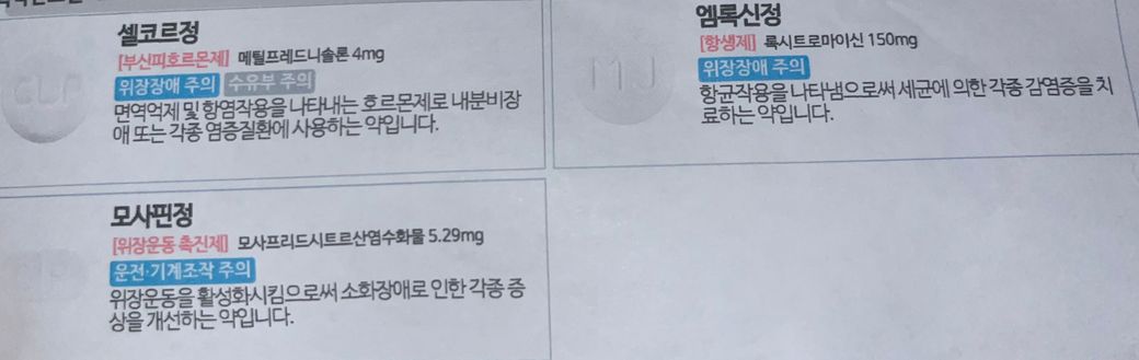 셀코르정은 스테로이드 성분의 약인데 부작용으로 붓기, 체중증가가 있긴해요.