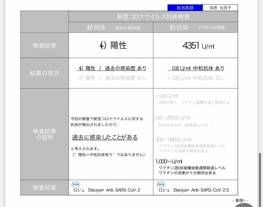 N항체 (코로나에 걸렸을경우나오는 항체) 양성