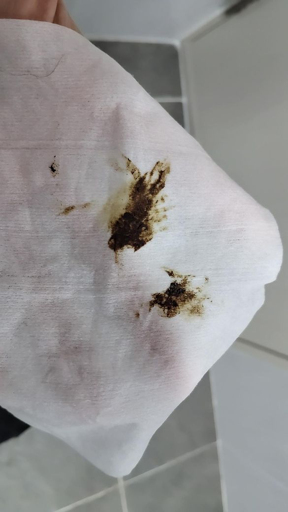 어제까지 정상변을 봤다가 오늘 아침에 변이 이런 색상이라 깜짝 놀랐습니다... 이 색상이 제가 아는 위출혈로 인한 변 맞을까요? 응꼬를 닦으면 두번째 사진의 색상으로 나옵니다.