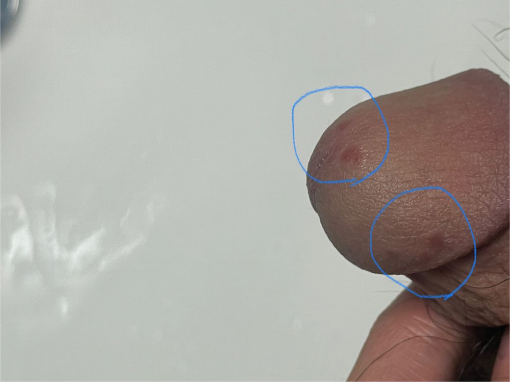 최근 1-2주 사이에 귀두 쪽에 붉은 반점이 생겼습니다. 최근 관계는 약 1달 전입니다.