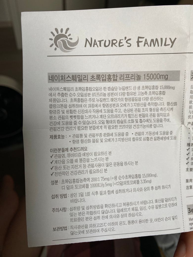 안녕하세요. 초록홍합오일 들어간 영양제인데 농축액이라고 하는걸 보니 함량이 높아보여요.