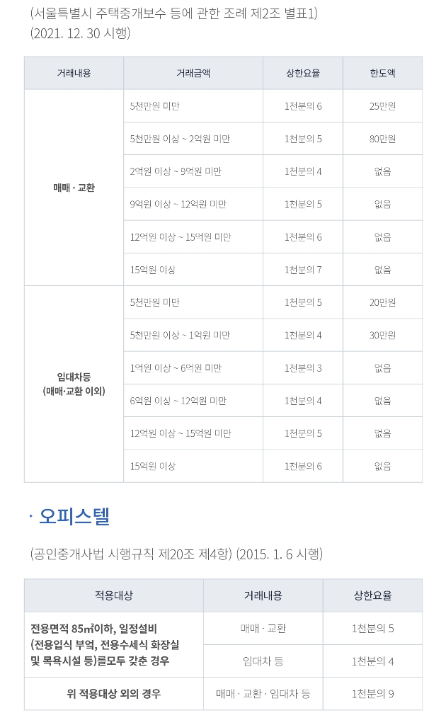 2. 복비의 상한요율은 어떻게 되는지 궁금합니다.