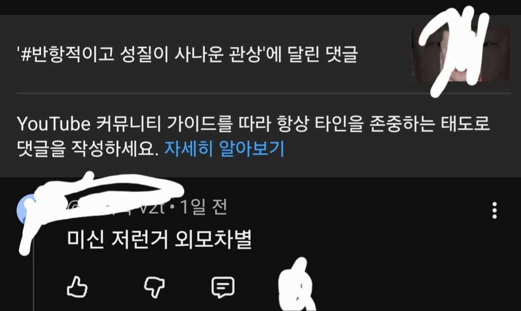 사나운 관상 뱀눈 이런 영상인데 이런거 다미신 외모차별 이렇게 댓글달았는데 모욕죄에 해당이되나요? 아니면 모욕죄는 아닌건가요?