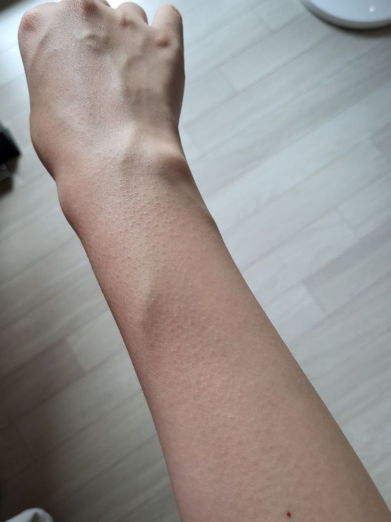 안녕하세요. 한두달 전부터 오른팔 손목위쪽이 가려운데 자세히보니 닭살돋은 것 처럼 살짝 오돌도돌하더라구요. 눈으로 봤을 때는 잘 안보여서 몰랐는데 사진으로 찍어보니 확연히 차이가 나보여서 질문드립니다.