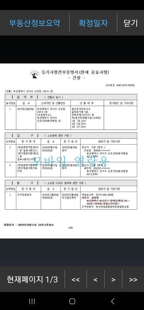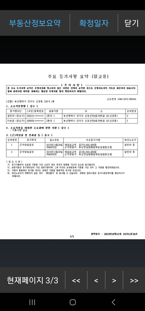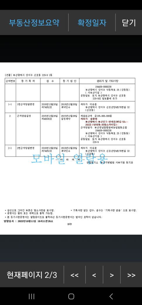 2015년 선순위 근저당이 잡혔으니 해당 기준으로 보아