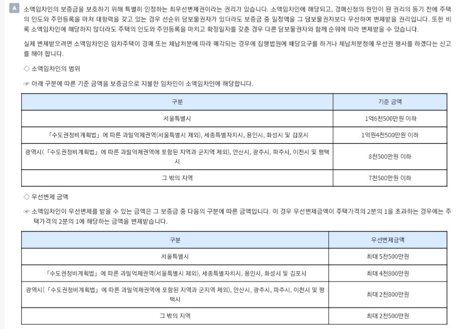 부동산쪽 말로는 최우선변제범위 2000만원에 해당된다하여 100% 받을수있다는 말에