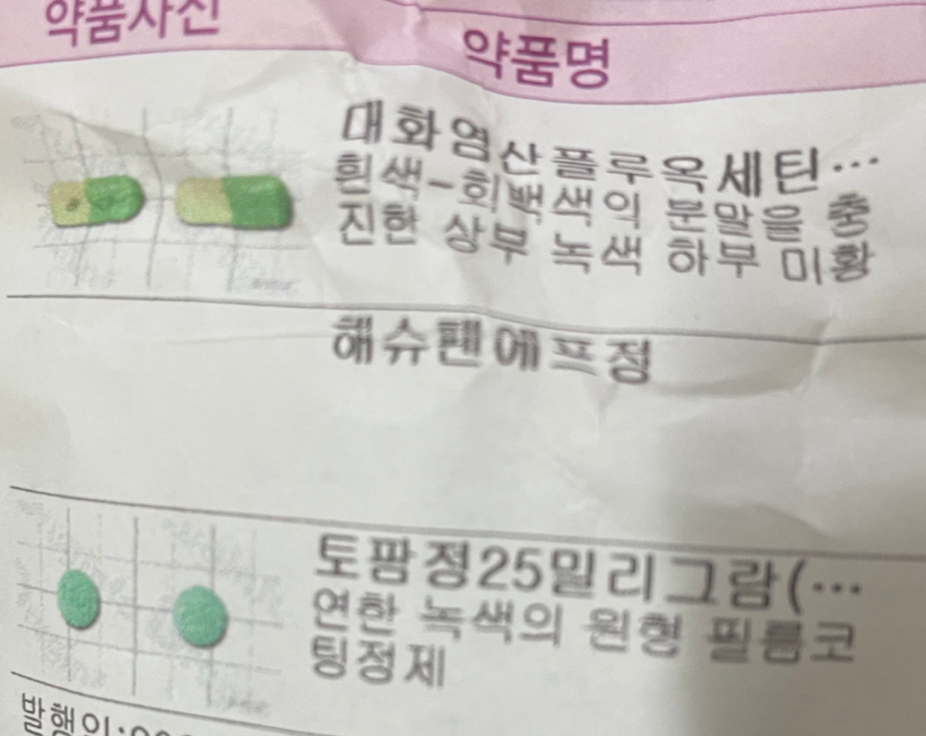 다만 약 드시면서 두근거림이 약간 발생하면, 감기약 드시는 동안 해슈펜에프정 정도만 빼고 드시는 것이 좋습니다.