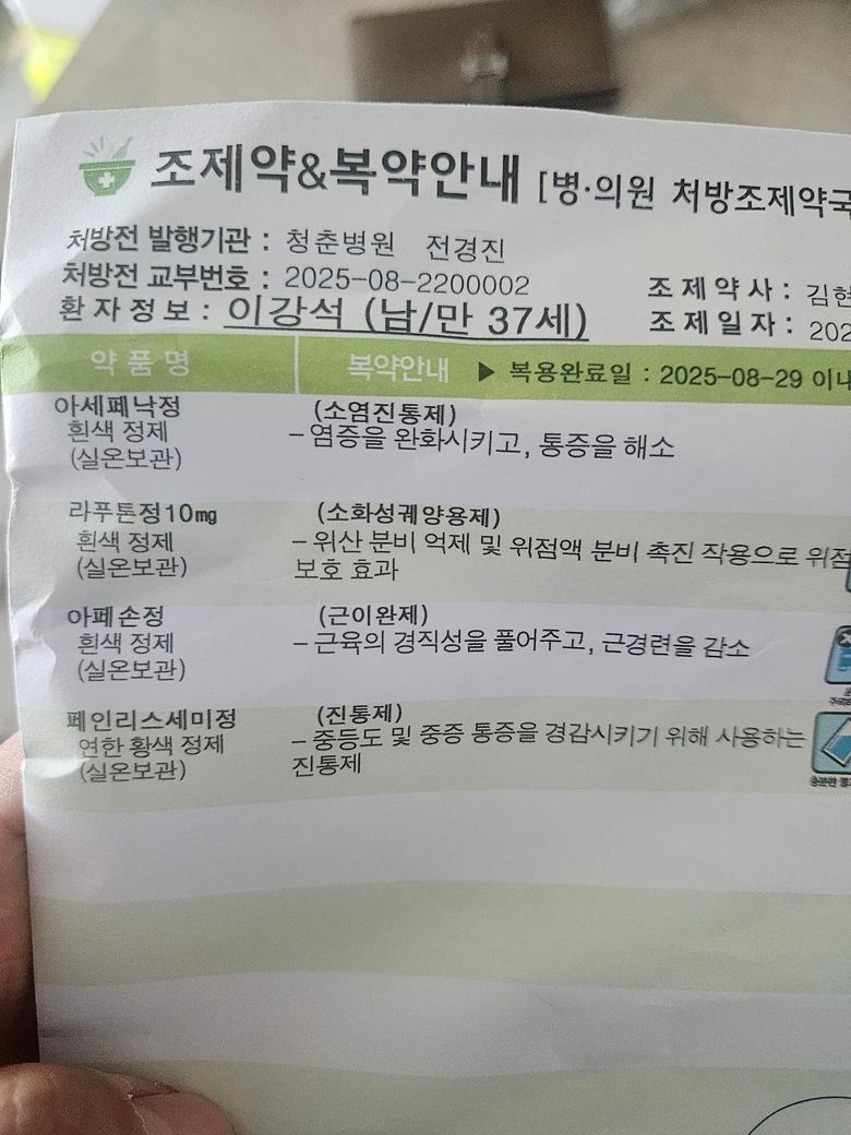 사진에 있는 약을 갈비뼈골절로 인한 통증이 심해서 약복용중인데요