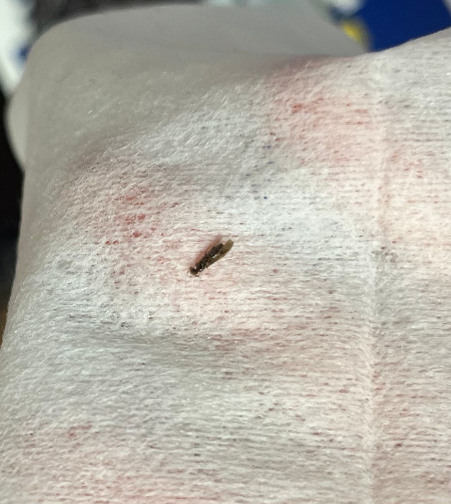 사진상으론 잘 모르겠습니다. 하지만 날개 달린 개미인 것 같습니다. 숫개미 또는 암개미인 거 같습니다. 그래서 내버려두면 문제는 없을 것 같습니다.