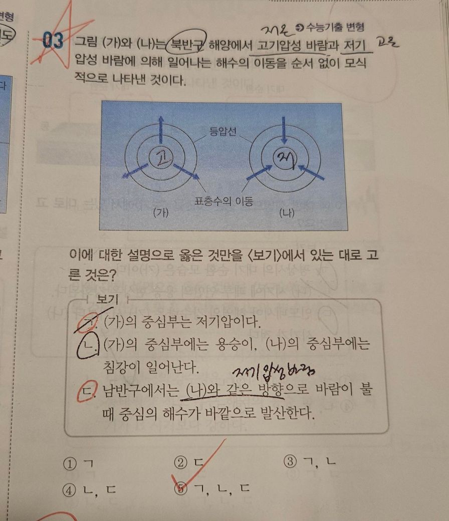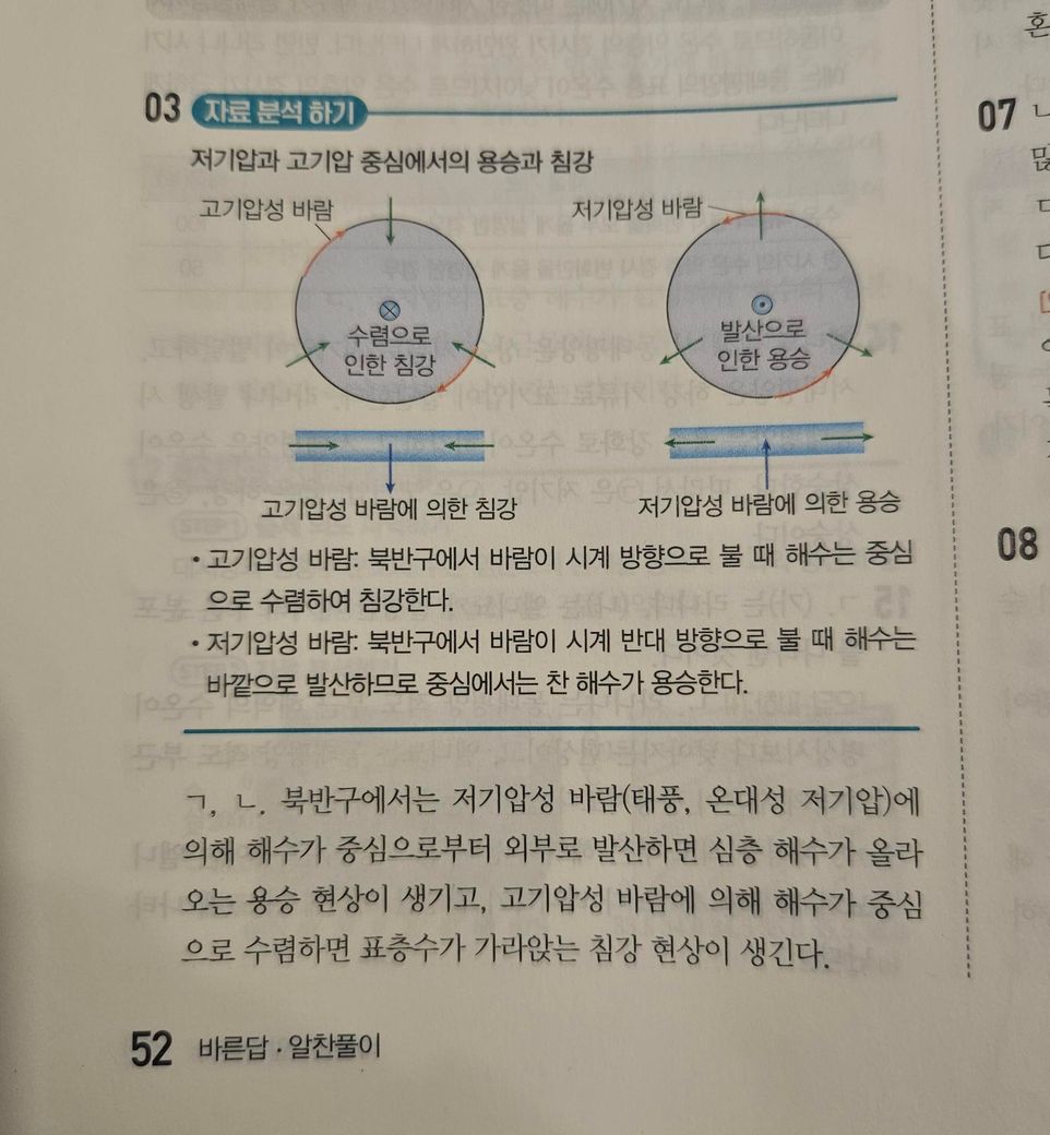 고기압성 바람이라는건 중심에서 바깥으로 부는 거 아닌가요..? 저 화살표가 바람방향이 아니라 표층해수방향이라지만 표층해수가 전향력으로 45° 꺾이는걸 고려해도 불어 나가던게 정확히 반대로 다시 들어올수가 있나요?ㅠ