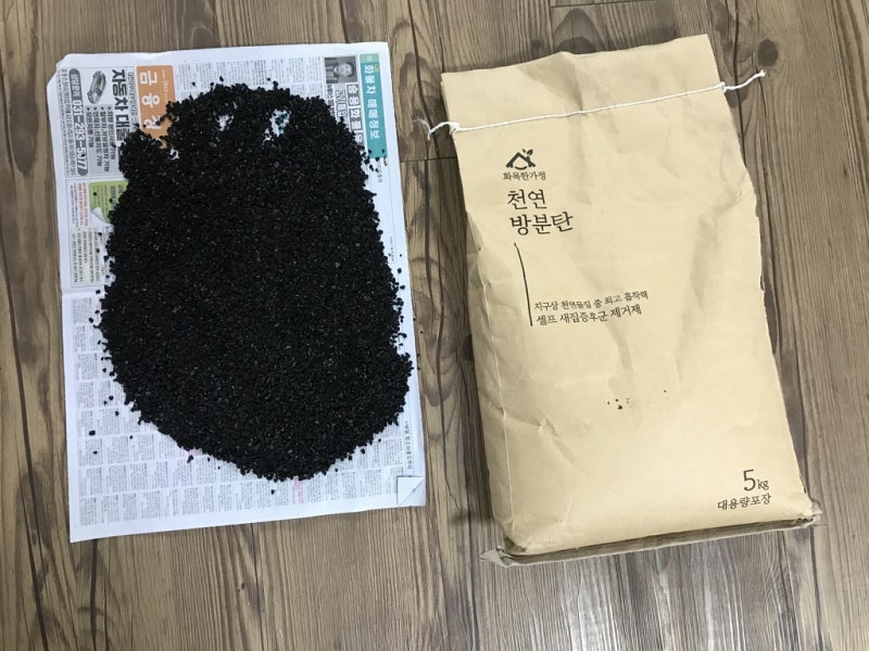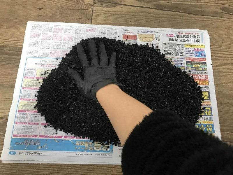 신문지 위에 넓게 펼쳐서 깔아주세요.