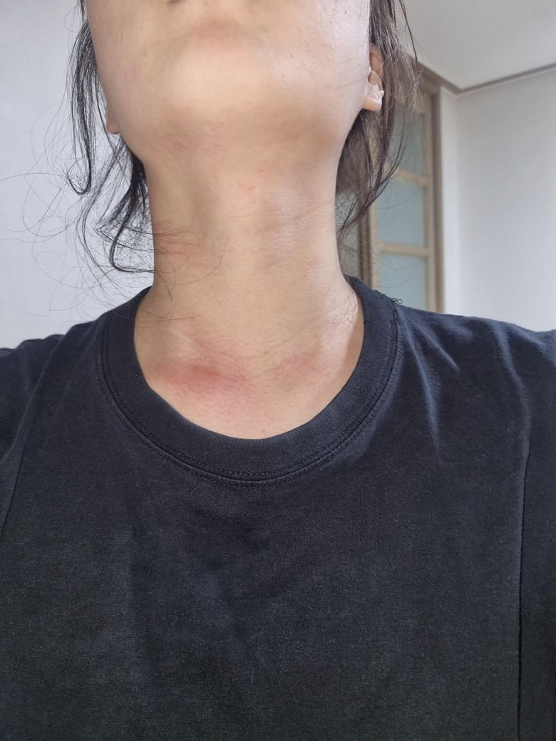 가장 흔하게 나는 곳은 허벅지이고 팔뚝에도 나고 오늘은 목 쪽에도 올라왔습니다. 무릎, 발목, 등, 손목, 발등 다양한 곳에 올라옵니다.