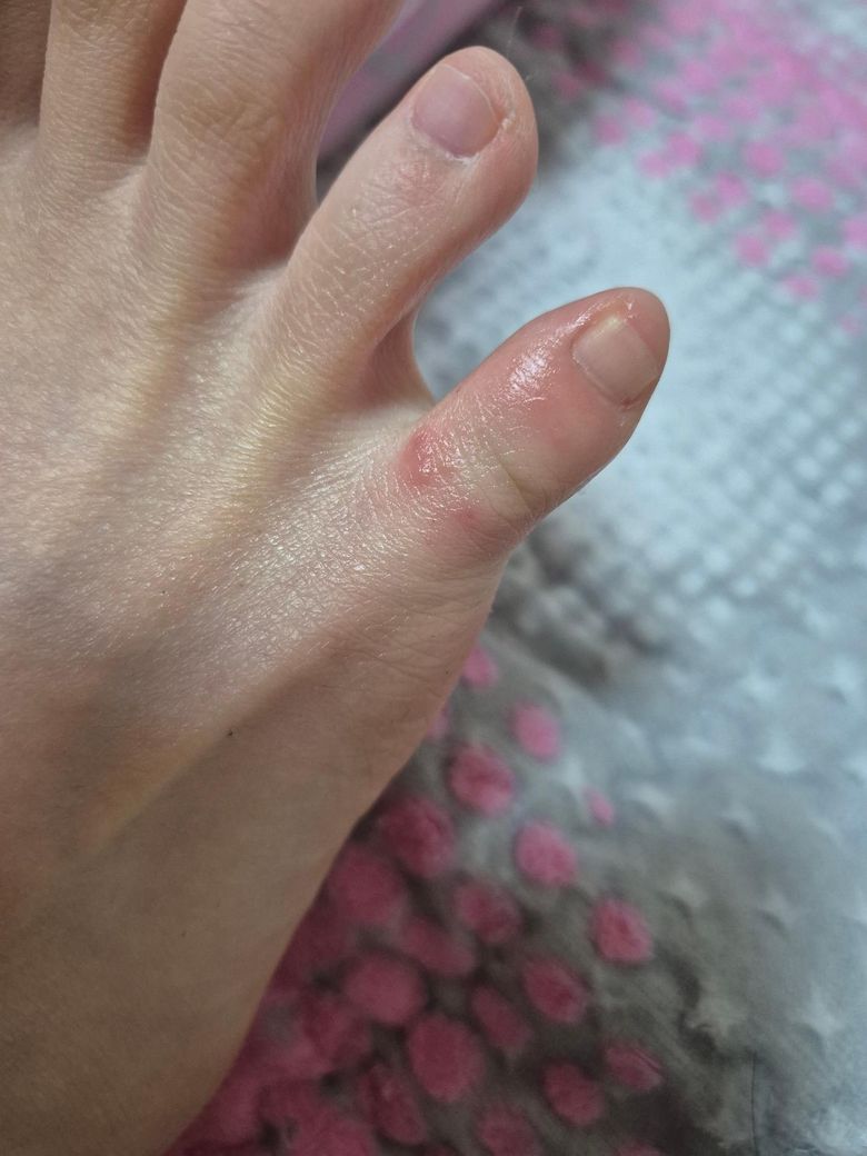 사진과 증상으로 보면 급성 감염보다는 국소 피부염 가능성이 더 높아 보입니다. 열감·통증·고름이 없고 새끼발가락 한 부위만 국한되어 있다면 당장 응급은 아니며, 며칠간 자극을 피하고 발을 건조하게 유지하면서 스테로이드가 아닌 보습제 또는 항히스타민 성분 연고를 먼저 써볼 수 있습니다. 다만 가려움이 5–7일 이상 지속되거나 붉은 범위가 넓어지거나 각질·진물이 생기면 무좀이나 습진 가능성이 높아져 피부과 진료를 받아 항진균제 또는 적절한 외용제를 처방받는 것이 안전합니다. 통증, 열감, 부종이 갑자기 심해지면 그때는 지체하지 말고 바로 진료를 권합니다.