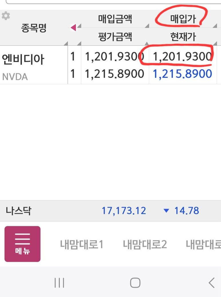그리고 주식매수당시엔 1,201.93달러에 환율이 1,372로 적용되어서 원화1,649,048에 매수되었다고 확인했는데,