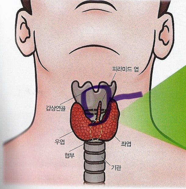 최근 거울을 보다가 고개를 뒤로 젖혔을 때, 목 중앙의 갑상연골(목젖) 바로 윗부분에 작은 알맹이 같은 것이 튀어나와 보이는 것을 발견했습니다.