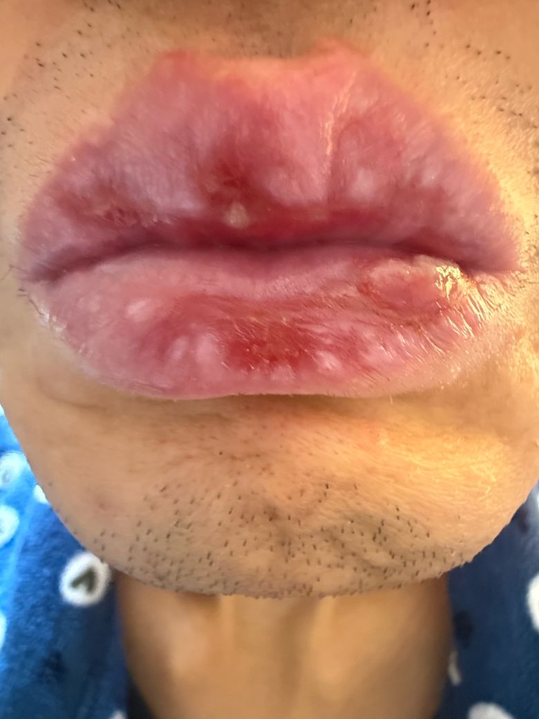 장기간 구순염에 시달리고 있는데 사진처람 입술에 염증?수포?가 있는데 조직검사 해봐야할까요?