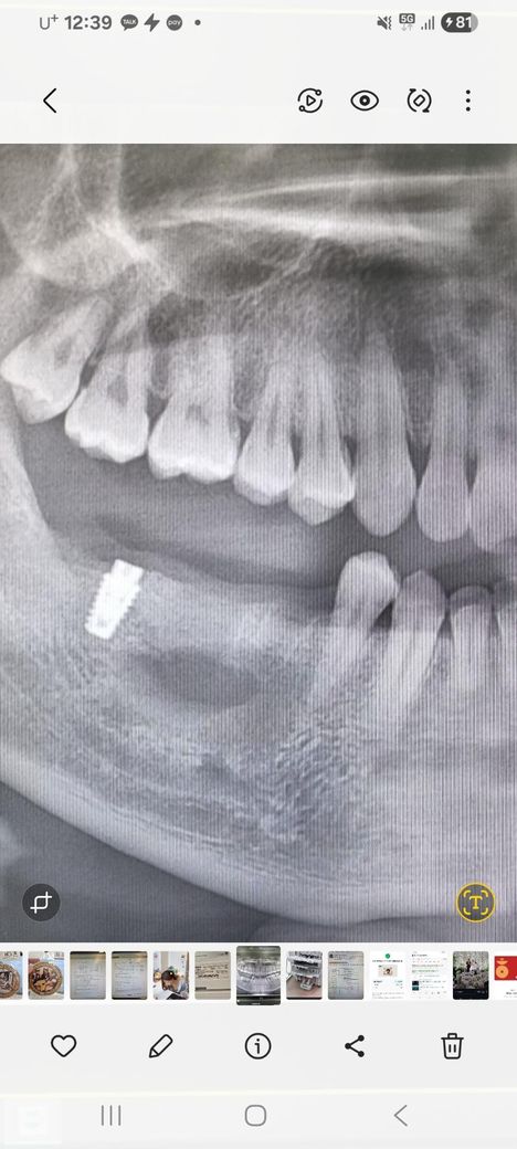올초에 맨 끝 어금니 뿌리쪽 크랙이 있어 치아를 뽑고 임플란트를 진행하는 중에, 옆 어금니에 통증이 있어 엑스레이를 찍어보니 염증이 있어 급히 치아 2개를 추가 발치했습니다.(첫번째 사진과 같이 염증이 커서