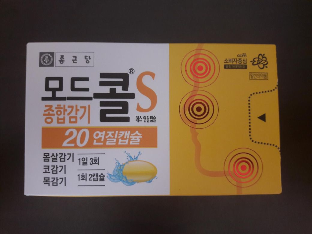 상비약으로 종합감기약을 샀는데, 약국에서 모드콜S 종합감기약 20연질 캡슐을 주더군요.
