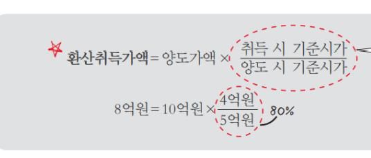 해당 사항의 경우 매매를 원인으로한 환산취득가액을 적용하는 것이